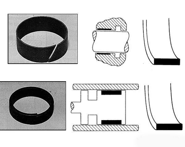 导向支撑环安装在液压缸端盖和活塞上,用于支撑活塞杆和活塞,引导活塞做直线运动,防止发生金属与金属的接触。材料上有塑料、涂有聚四氟乙烯的青铜等。